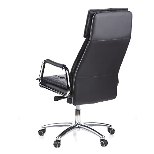 HJH Office 600920 Poltrona Girevole VILLA 20 Pelle, Sedia da Ufficio con Schienale alto, Comoda, Regolabile in Altezza, Nero