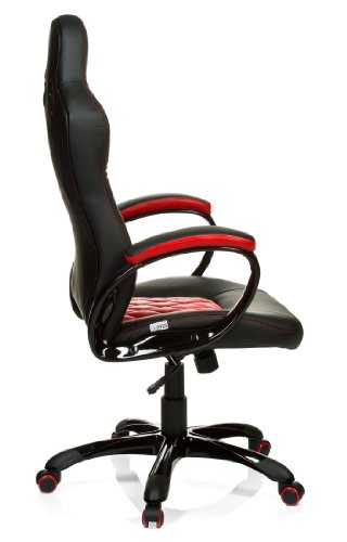 Hjh OFFICE 621844 Sedia da Gaming/Sedia Girevole RACER EXECUTIVE Similpelle Nero/Rosso, Ideale per Giocatori, Sedie da Corsa, Braccioli Imbottiti