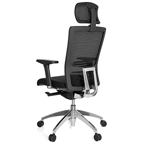 HJH Office 657501 Sedia da Ufficio Astra Lux Tessuto/Rete, Sedia Girevole con Supporto Lombare e Braccioli, Poggiatesta Regolabile in Altezza, Nero