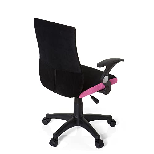 HJH Office 670450 Sedia da ufficio per bambini KIDDY PRO AL tessuto nero rosa, con braccioli, regolabile in altezza, ideale per l'inizio dell'anno scolastico, sedia ergonomica