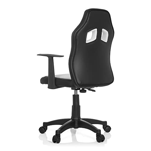 HJH Office 670830 Sedia da Ufficio Girevole per Bambini KID GAME AL Similpelle, Sedia da Scrivania Regolabile in Altezza con Braccioli, Nero/Bianco