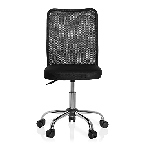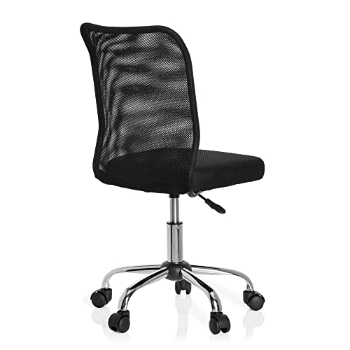 HJH Office 685968 Sedia da Ufficio per Bambini KIDDY Net Tessuto Mesh Nero, Senza braccioli, Regolabile in Altezza, Schienale Traspirante, Base Stabile in Acciaio Cromato