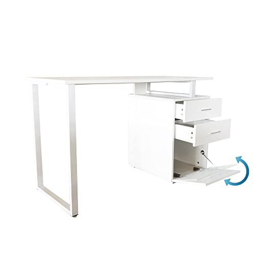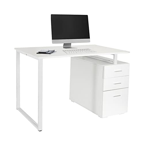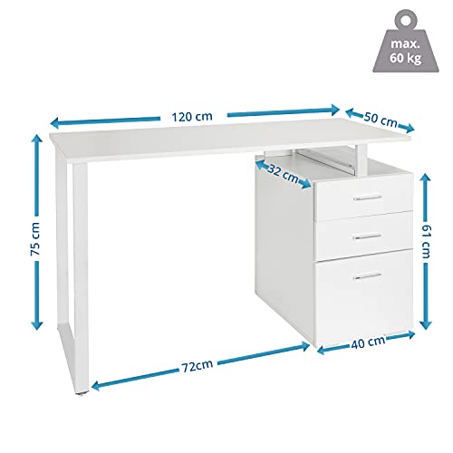 Hjh OFFICE 821007 - Scrivania moderna “Easy Work V”, 120 x 50 cm, colore: bianco, con mobiletto da ufficio, facile da pulire