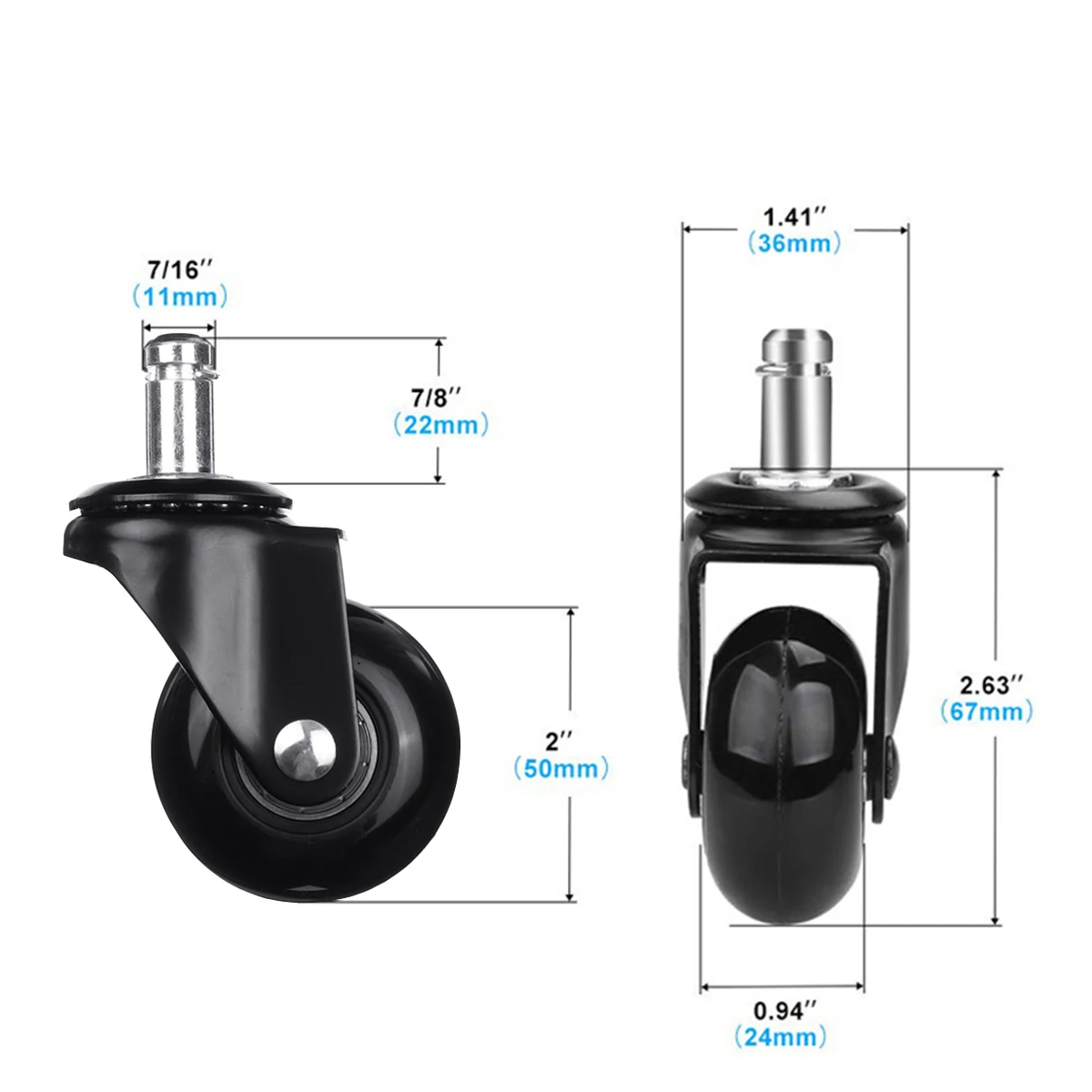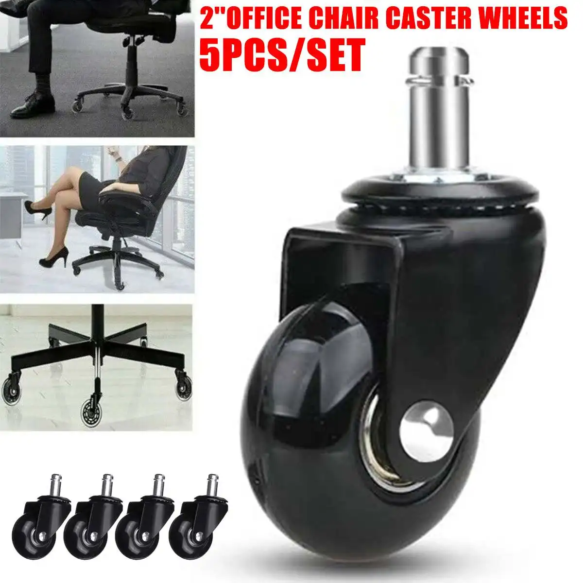 5 x Office Chair Caster Wheels Universal Mute Caster Wheel 2" Office Chair Swivel Rollers 360 Degree Wheels Furniture Hardware