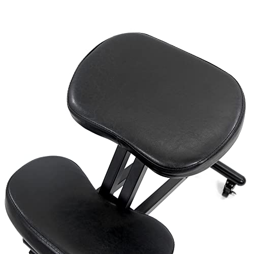 HJH Office ORTHONI 830058 - Sgabello ergonomico in ecopelle, con ruote, altezza regolabile, colore: Nero