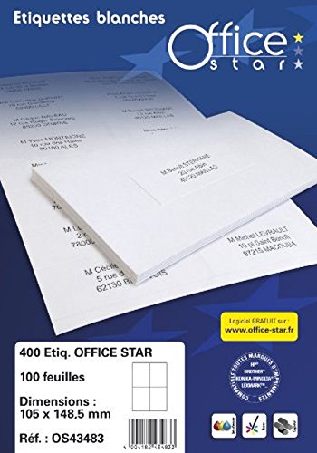 Office Star OS43474 - Etichette multiuso, 70 x 37 mm, confezione da 2.400, colore: Bianco