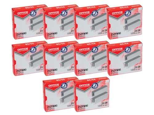 OFFICE PRODUCTS 18072379-19 - Punti per cucitrice 23/20, 10.000 pezzi (10 x 1000 pezzi) standard per graffette per graffette, zincate