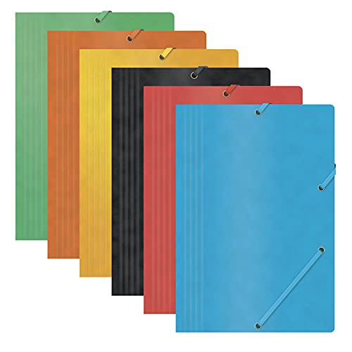 Office Products 21194011 - 05 Mappe Con Gomma Band Press span, A4, grammatura 390 G/M², 3 scomparti, Nero