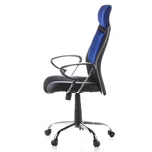 HJH Office Sedia Girevole City 80 Ecopelle Tessuto Nero Blu Cromo