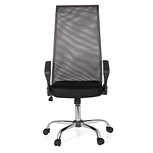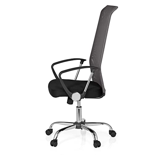 HJH Office Sedia Girevole Kio Net 200 Tessuto Netto Nero Grigio Scuro Cromo