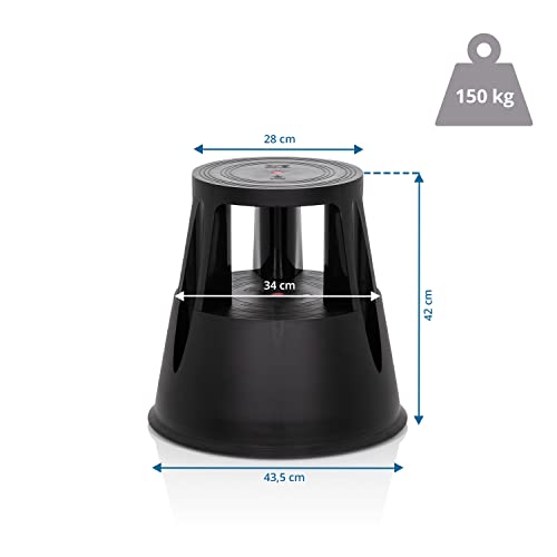 HJH Office TIO-M I 830000 - Sgabello in plastica con Base di Elefante, Certificato T?V, Altezza 42 cm, Portata Fino a 150 kg, con Ruote, Colore: Nero