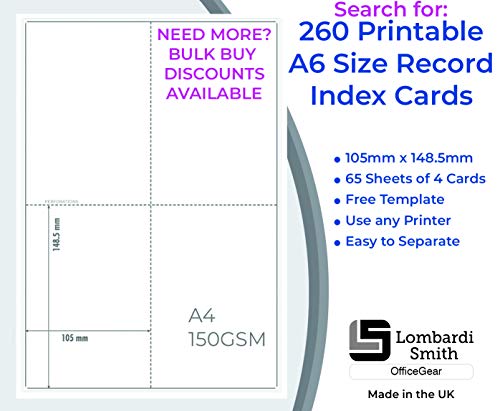 ✅ STAMPA LE TUE CARD A6 DA SCHEDARIO - 120 card formato A6 vuote stampabili personalizzabili professionali. Da usare con qualsiasi stampante