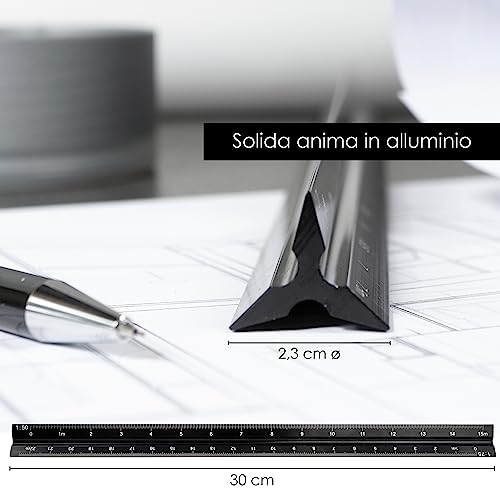 FACILE DA USARE - Righello 30 cm alluminio per disegni tecnici di architetti e ingegneri, per costruzioni e arredamento, un pratico strumento di lavoro a scuola e all'università