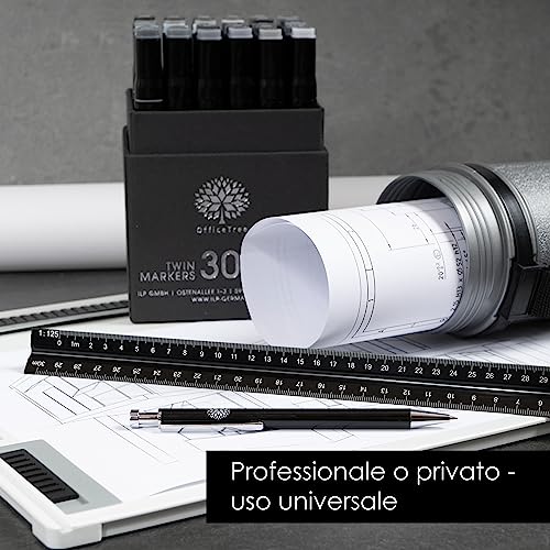 PROFESSIONALE - OfficeTree Righello 30 cm alluminio di lunghezza, Righelli scala metrica 1:20, 1:25, 1:50, 1:75, 1:100, 1:125