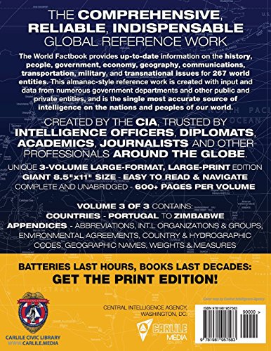 The Official CIA World Factbook Volume 3: Full-Size 2018 Edition: Giant 8.5"x11" Format, 600+ Pages, Large Print: The #1 Global Reference, Complete & ... Vol. 3 of 3, Portugal ~ Zimbabwe, Appendices.