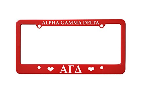 Officially Licensed Alpha Gamma Delta License Plate Frame - Red with Hearts