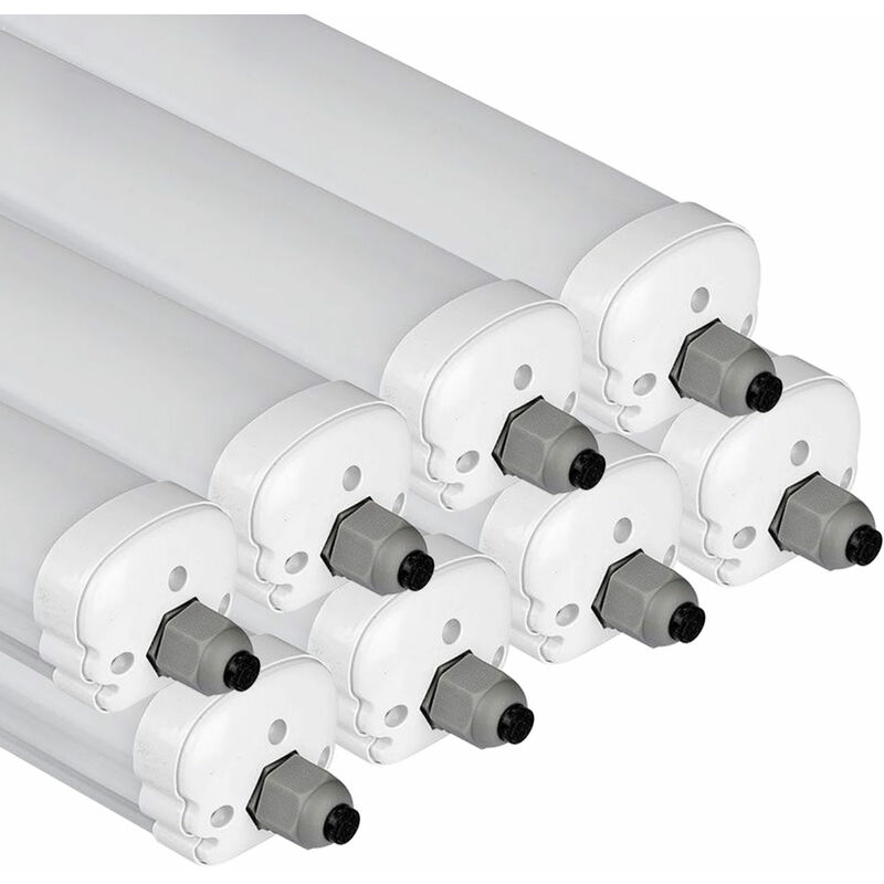 Descrizione Plafoniera a LED per l'utilizzo in edifici industriali o magazzini, officine o garage. Grazie all'elevato grado di protezione IP65, questa lampada è ideale come luce per ambienti bagnati e umidi. Con ben 4320 lumen, ogni area, che si tratti di un posto di lavoro, cantina o garage, è illuminata in modo ottimale! Nella fornitura è inclusa una lampadina LED di alta qualità con ben 36 Watt di potenza. La fornitura comprende otto luci! Particolare lampada • Tipo di luce: plafoniera • Telaio: plastica (ABS) • Paralume: policarbonato • Grado di protezione: IP65 • Lunghezza x larghezza x profondità in cm: 120x8.6x7 • Sorgente luminosa: LED • Lampadina inclusa: sì • Potenza della lampada: 36 watt • Flusso luminoso: 4320 lumen • Colore della luce: bianco freddo • Alimentazione: 220-240V, 50-60Hz Dettagli lampadine • Tipo di sorgente luminosa: LED • Flusso luminoso: 4320 lm (lumen) • Consumo energetico: 36 kWh/1000h • Temperatura colore: 6400 K (Kelvin) • Colore della luce: bianco
