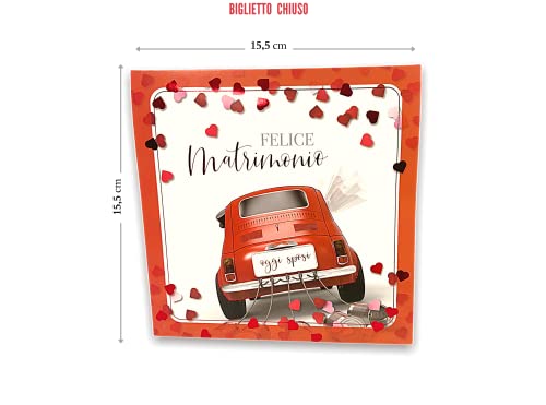 LINA OFFICINE GRAFICHE CREATIVE 90-031 Biglietto Matrimonio Portasoldi - Busta di Chiusura per Soldi Inclusa, Auguri per Sposi, Pop up Interno con Musica “Marcia Nuziale” 15,50x15,50cm, multicolore