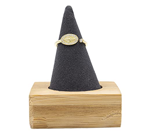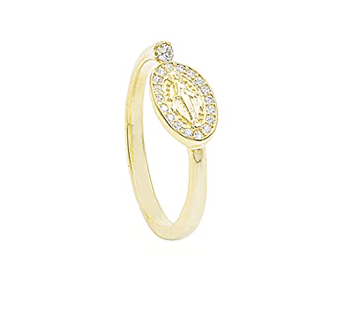 Officine Petra Anello da Donna in Argento con Madonna delle Grazie Circondata da Zirconi Cubici e Punto Luce (Oro Giallo)
