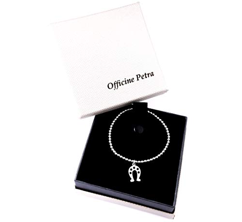 Officine Petra Bracciale elastico da Donna con Perline di Argento Rodiato e Ciondolo a Ferro di Cavallo