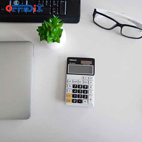 OFFIDIX Calcolatrice da tavolo desktop, calcolatore elettronico a doppia alimentazione a energia solare e batteria Calcolatrice a grande visualizzazione LCD a 12 cifre portatile