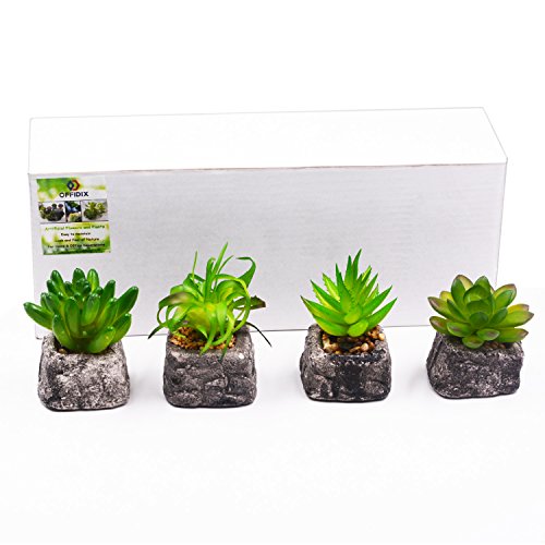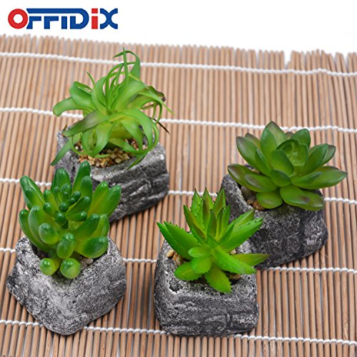 OFFIDIX Piante Artificiali di casa e Decorazione di Ufficio Set di 4 Decorazioni di Ufficio Moderna Piccole Piante succulente di plastica Pianta in Vaso Verde