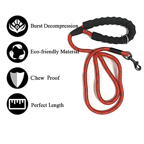 OFHome Guinzaglio per cani in corda, anti tiraggio da 5 m, con comodo manico imbottito e fili altamente riflettenti per cani di piccola taglia e media grande (rosso)