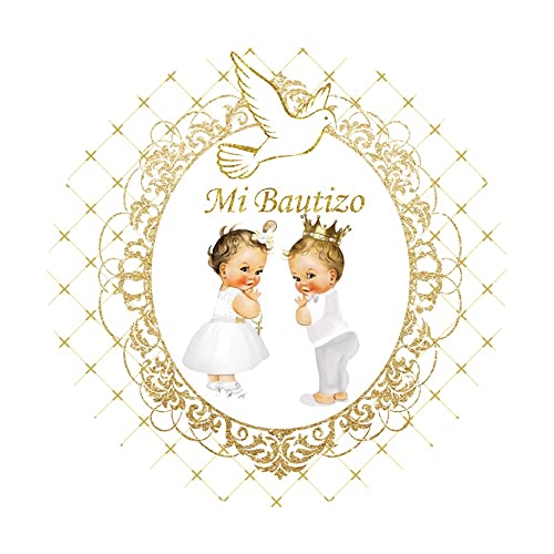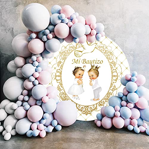 OFILA 2x2m Bambino Battesimo Battesimo Sfondo Rotondo Due Angeli Bambini Mi Bautizo Fondali Fotografia Prima Comunione Baby Shower Mi Primera Sfondo Photo Booth