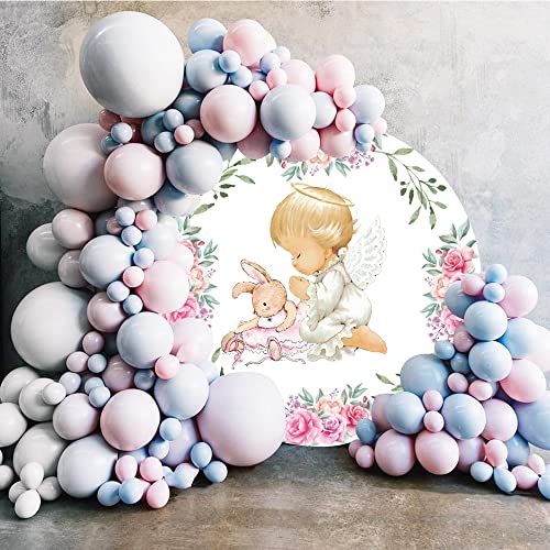 OFILA Sfondo Rotondo per Battesimo del Bambino 1.5x1.5m Piccolo Angelo Ragazza Prima Comunione Sfondo Rotondo Dio benedica Fotografia Sfondo Baby Shower Decorazione di Compleanno