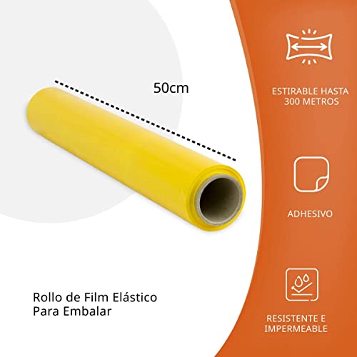 OFITURIA Pellicola gialla per imballaggio 50 cm di larghezza e allungabile fino a 300 metri di lunghezza - Rotolo di pellicola elastica manuale per imballaggio industriale - 2 unità