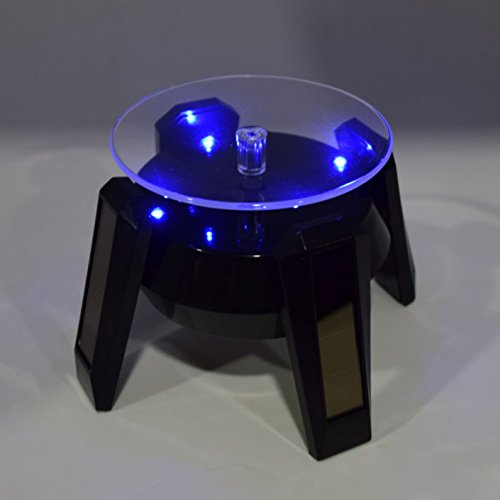 Questo banco di visualizzazione solare ruoterà con luce blu LED, gli elementi che visualizzano su di esso sarà più affascinante. Ideale per la visualizzazione di prodotti quali telefoni cellulari, MP4, orologi, gioielli, ecc