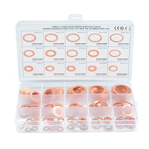 [Rondelle di tenuta metriche] 10 dimensioni 150 pezzi assortimento rondella di rame, include M5 M6 M8 M10 M12 M14 M16 M18 M20 M22