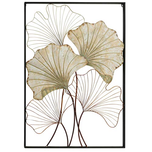 Oggetto da parete in metallo con foglie di ginkgo, altezza 107 cm, larghezza 76 cm, profondità 3 cm