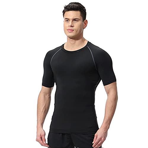 OGOUGUAN Maglia da uomo a doppia compressione, a maniche corte, a compressione per esercizi, da palestra con tessuto HeatGear, Nero, M