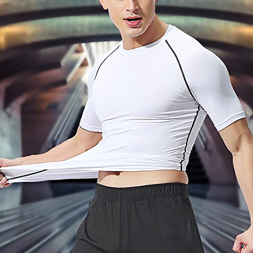 OGOUGUAN Maglia da uomo a doppia compressione, a maniche corte, a compressione per esercizi, da palestra con tessuto HeatGear, Rosso, S