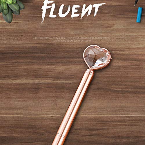 Ogquaton - Penna a sfera con cristalli, a forma di cuore scintillante, per ragazze e donne, penna a sfera in metallo, regalo di cancelleria per studenti, in oro rosa, portatile e utile