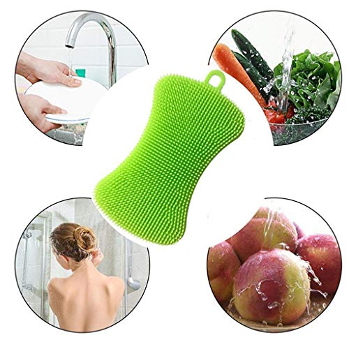 Ogquaton, spugna in silicone per la pulizia del piatto della cucina, multiuso, spazzola per la pulizia di pentole e piatti, ciotole, frutta, verdura, verde, pratica e popolare