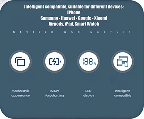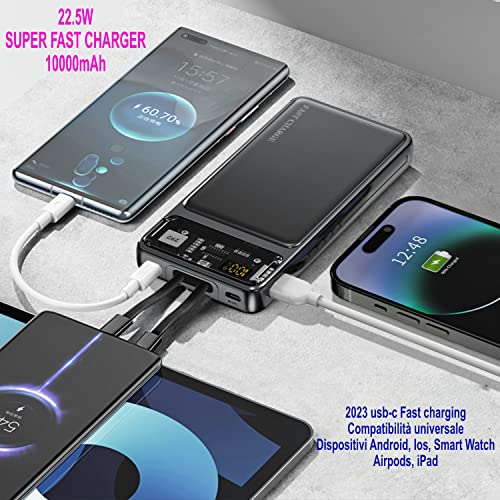 [COMPATIBILITA' UNIVERSALE] Il caricabatterie ultra sottile, leggero e veloce 22.5W è in grado di caricare in modo super veloce non solo tutti i cellulari, tablet ma anche i piccoli dispositivi come smart watch, cuffie Bluetooth, fitness tracker, Airpods. Il PowerBank è perfettamente compatibile con il tuo nuovo dispositivo Android, iPhone nonché tutti i dispositivi USB-C.