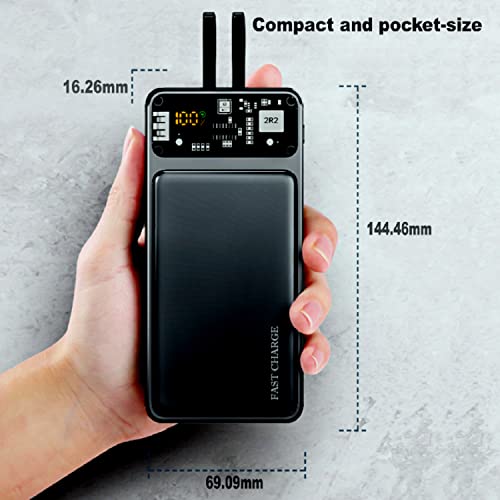 Oguol Power Bank 10000mAh, Caricatore Portatile 22.5W USB C, Cavi Integrati Per iPhone Samsung Huawei, Sottile Leggero, Caricabatterie Ricarica Veloce