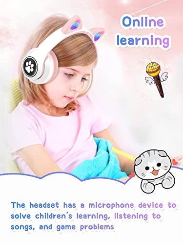 【Cute Cat Ears Luminous LED Design】Gli auricolari wireless per i bambini utilizzano appositamente progettate super simpatiche orecchie di gatto. Le cuffie Bluetooth con LED rosso/blu/verde possono lampeggiare e cambiare colore al ritmo, in modo che i tuoi bambini possano ballare sulla musica, divertirsi di più e portare gioia e felicità ai tuoi figli e alla tua famiglia.