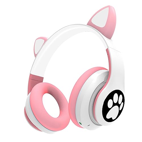 OHAANYY Cuffie Bluetooth bambini, ragazze Cat Ear cuffie over-ear con luce LED pieghevole cuffie stereo Bluetooth, bambini cuffie senza fili con microfono, Micro SD/TF, per Tablet/Mobile/PC (Rosa)
