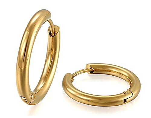 OHANA Orecchini a Cerchio Donna in Acciaio Placcato Oro 18K (15 mm)