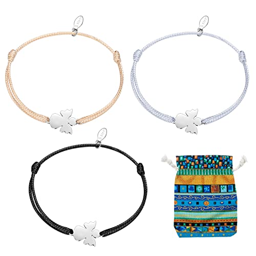 Ohaoduo - Bracciale da donna con angelo custode, 3 pezzi, per donne e ragazze, portafortuna, realizzato a mano, in filigrana