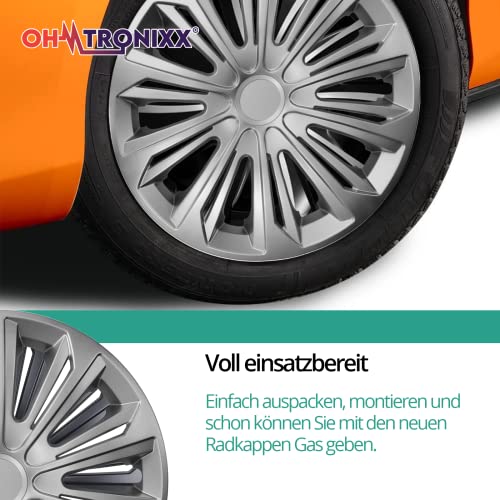 Ohmtronixx Strong - Copricerchi da 15 pollici, set da 4 pezzi, colore argento, in plastica ABS