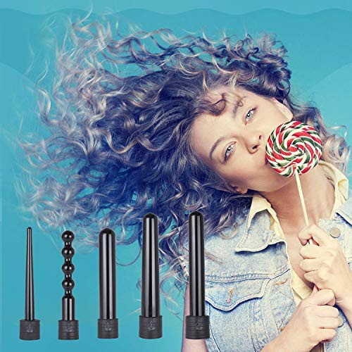 Ohuhu 5 in 1 Bacchetta per Arricciacapelli in ferro Arricciato con 5 Botti di ceramica intercambiabili e Guanto protettivo termico
