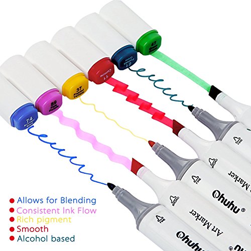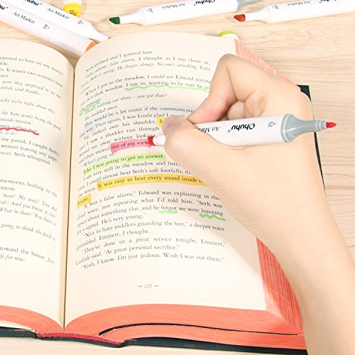 Ohuhu Pennarelli Indelebili a doppia Punta, Evidenziatori con Borsa da Trasporto per Colorare, Dipinti, Evidenziare e Sottolineare (60 Pezzi Colori)