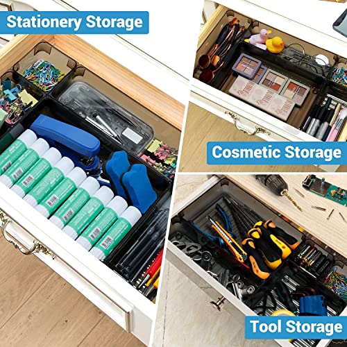 Organizer Multifunzione per Cassetti: questi organizer per cassetti sono ideali per mantenere in ordine i cassetti del comò, del bagno, della cucina, del soggiorno o dell'ufficio conservando cosmetici, strumenti per il trucco, accessori per capelli, smalti per unghie, dentifricio, pettini, medicinali, gioielli e forniture per ufficio ecc. in zone specifiche, rendendo il tuo spazio più ordinato che mai.