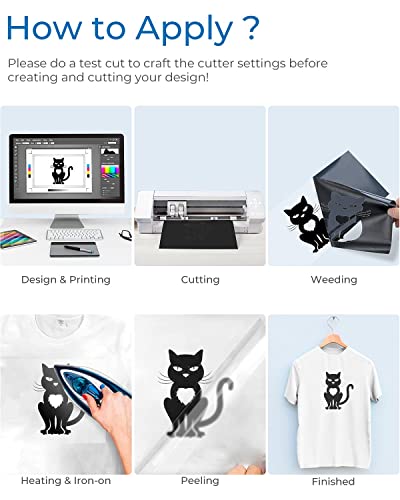 FACILE DA USARE: Tutto quello che dovete fare per iniziare ad applicare questi Vinile termoadesivo per tessuti è quello di utilizzare il dispositivo di taglio Craft Cutter Machine. Quindi impostare la profondità di taglio della macchina, rimuovere le parti extra e trasferire l'immagine sulla superficie di vostra scelta. Infine, riscaldare con una pressa o un ferro da stiro (applicare una pressione di 300℉-320℉ (150℃-160℃) per 10-15 secondi), rimuovere la pellicola protettiva e voilà!