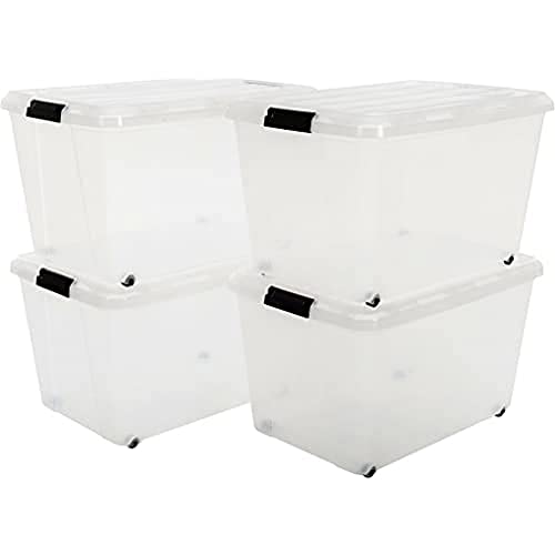 Iris Ohyama 100040 Set di 4 scatole impilabili con manici e coperchio, 29 l, trasparenti
