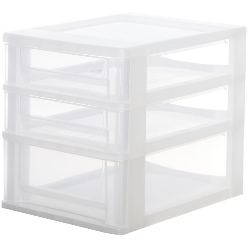 Iris Ohyama, Aufbewahrungsturm, Kunststofforganizer, 3 Schubladen, 2 x 4L + 1 x 7L, Solide Griffe, Mehrzweck, Wohnzimmer, Schlafzimmer, Büro - DDOCH-2021 - Frostweiß